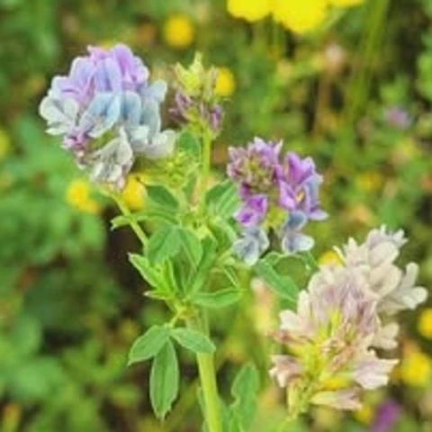 A La Ferme des Cinq Terres, nous cultivons beaucoup de luzerne en bio (ici, en fleurs). Le nectar butiné, ainsi que celui d'autres fleurs, dont le tournesol, donne le miel de fleurs d'été Les Fabuleuses du Berry. Un grand classique en goût, disponible en version naturellement cristallisée ou crémeuse.
