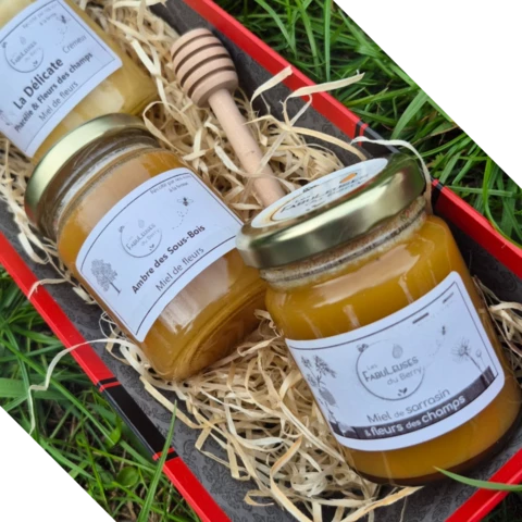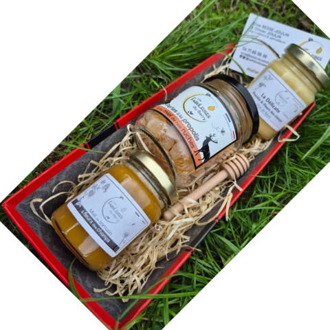 Vous pouvez également composer un coffret à votre image, parmi nos miels, bonbons au miel et lentilles vertes de la ferme, sur mesure.