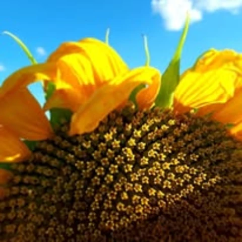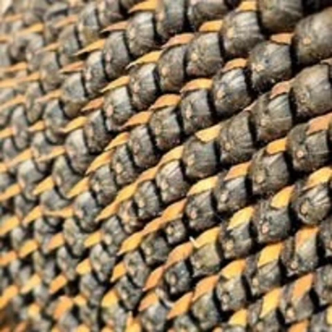 Hypnotique géométrie ! Graines de tournesol, mûries lentement au soleil de l'été à la Ferme des Cinq Terres (18).